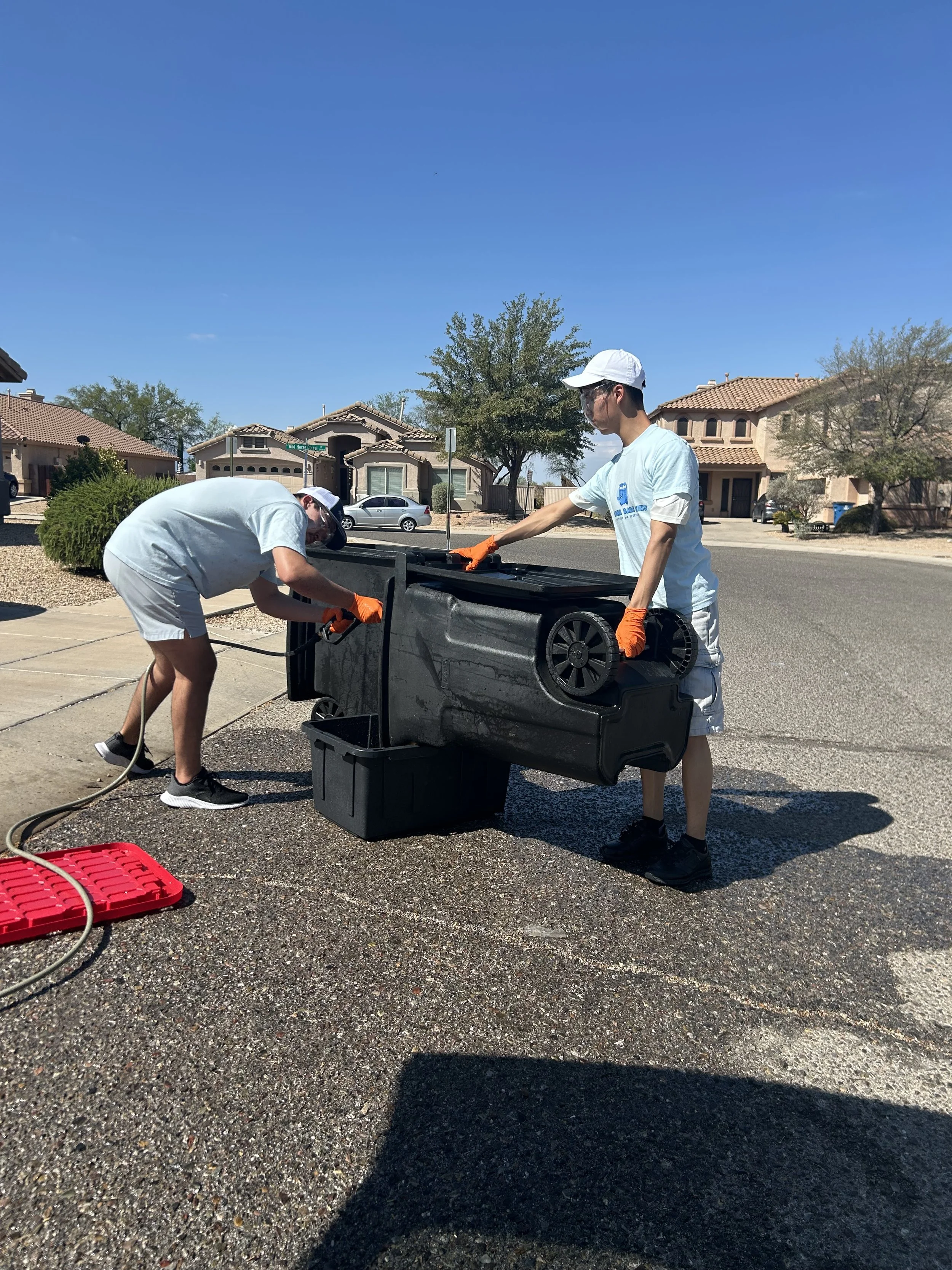 This is our deluxe service where weekly, we put your can on the curb for your trash day then we wait until emptied. Once emptied we do our disinfectant, scrub, rinse and add our soft repellent for fly’s, ants, and other small unwanted critters. Finally we place your can back in your desired location.